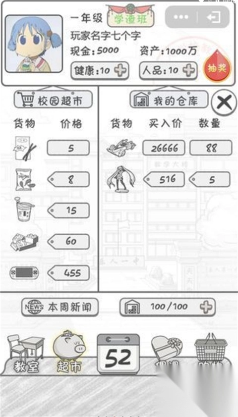 1、在怀念的校园中展开头脑商战,售卖商品赚取差价。
