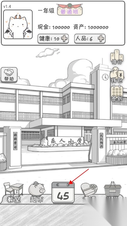 1. 当页面下方的日历倒计时呈现玩家学期所剩天数时,玩家需在剩余时间里努力提升成绩、积攒资金。