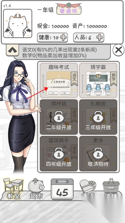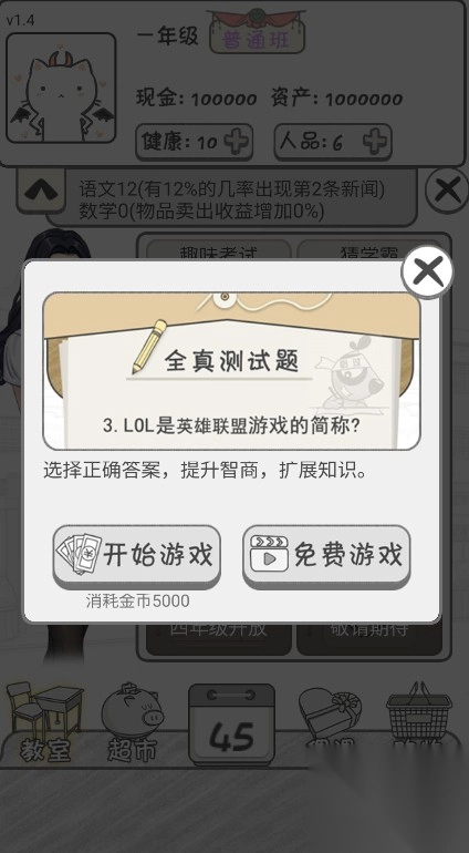 2、进入教室,玩家可选择“趣味考试”玩法,开始考试。