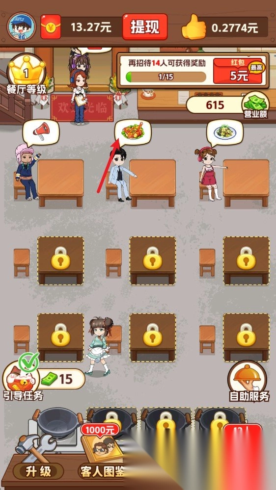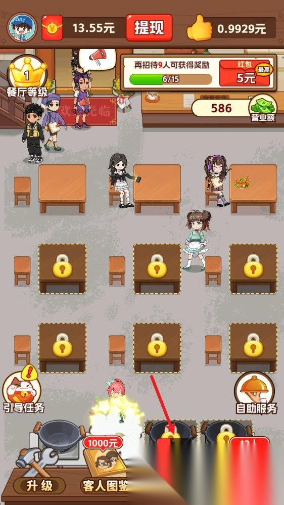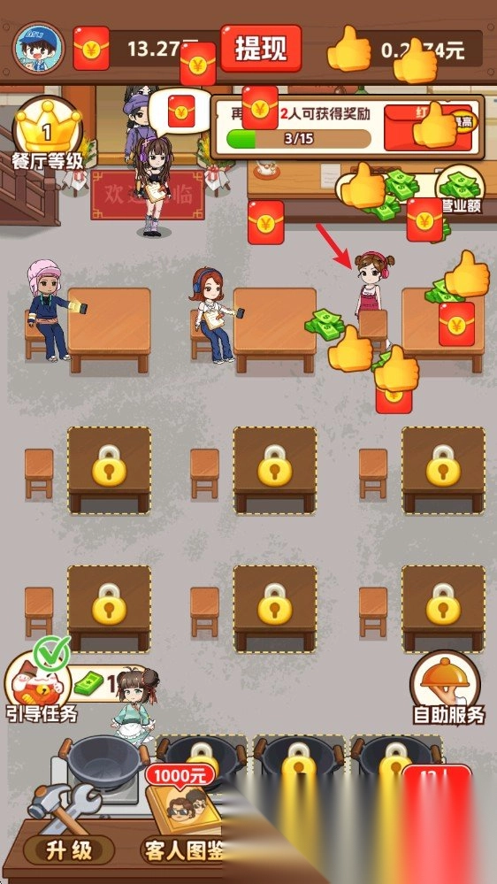 2. 通过不断的升级店铺等级,解锁更多的桌位,扩展营业规模。