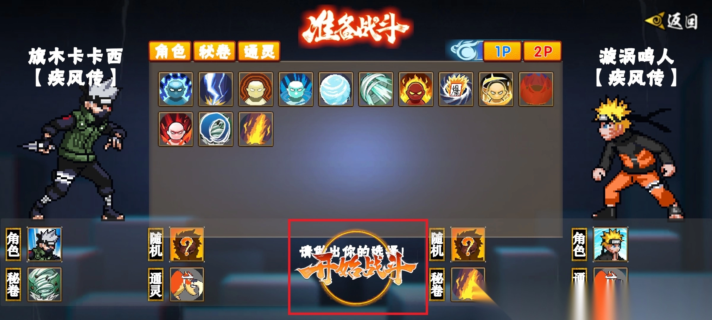 3、选定角色后,搭配秘卷与通灵技能,准备迎战;
