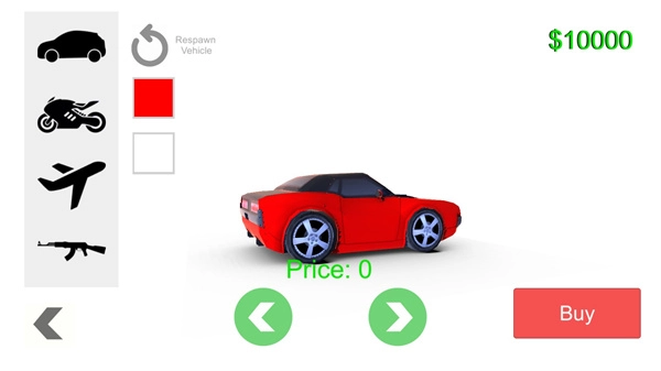 4、点击左上角我们可以购买各种武器和汽车,在这里大家可以随意购买;