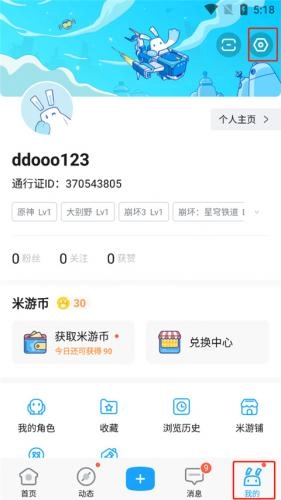 1. 于逗游网下载米哈游账号管理中心,用户打开该软件后,点击底部的【我的】。