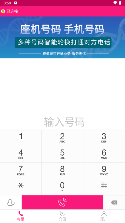 打电话要先在软件进行充值的哦,充值了才可以使用。