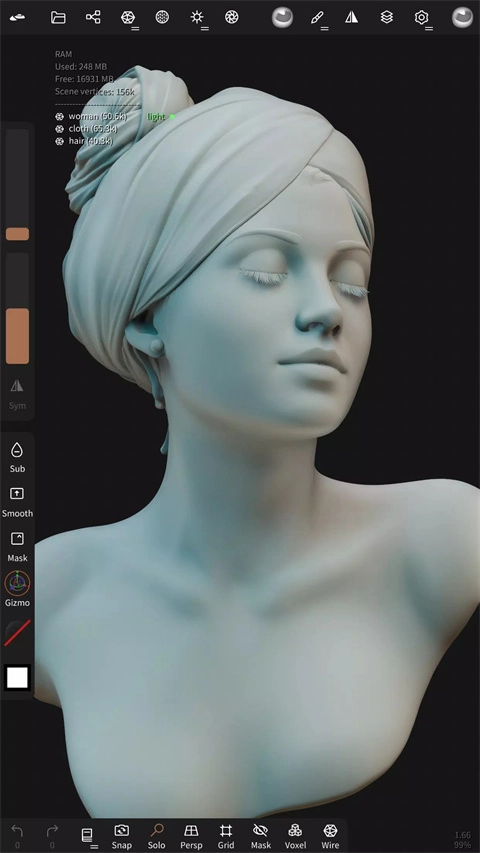 1、Nomad 3D建模具备便捷的图层功能,可将网友的雕刻与绘画操作记录在单独图层,从而能轻松地进行迭代。