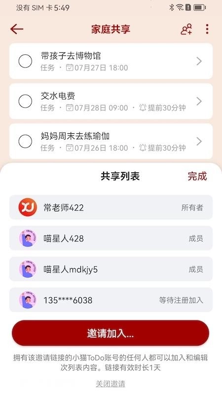 支持用户轻松实现任务的共享,就可和家庭成员来进行实时共享,轻松共享任务。