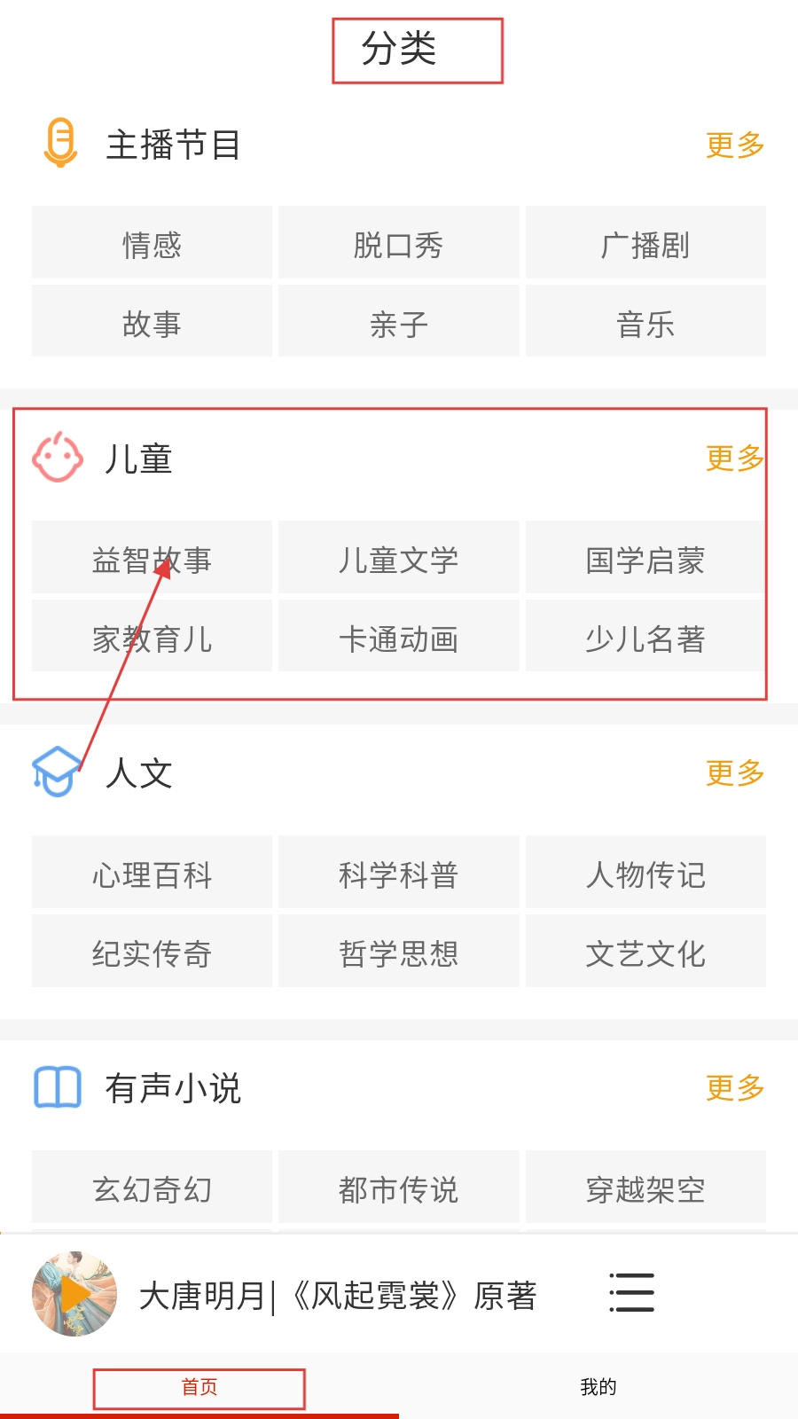 1. 打开应用,于首页的【分类】界面,点击【儿童】分类来查看。