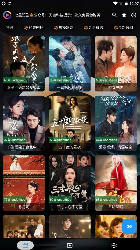 七星短剧免费版,是为短剧爱好者量身定制的平台。这里短剧资源极为丰富,每日都有新剧上架。其智能推荐算法十分贴心,无需你费力寻觅,那些你可能感兴趣的短剧,直接就呈现在首页,让你每天都能欣赏到精彩好剧。凭借免费且优质的内容,以及人性化的功能设计,七星短剧免费版深受用户喜爱。