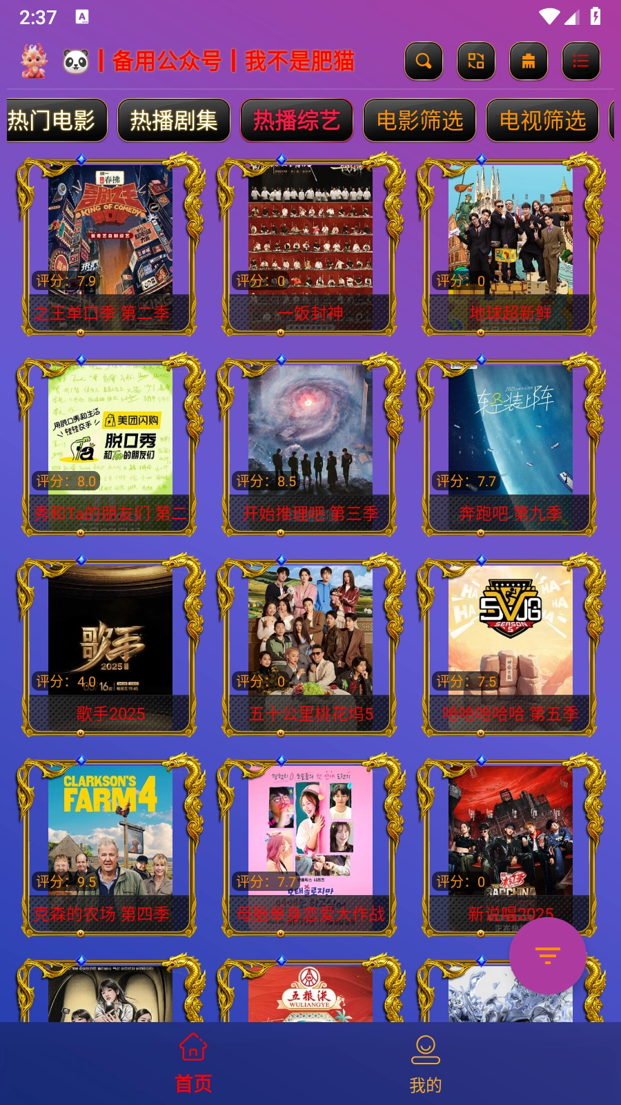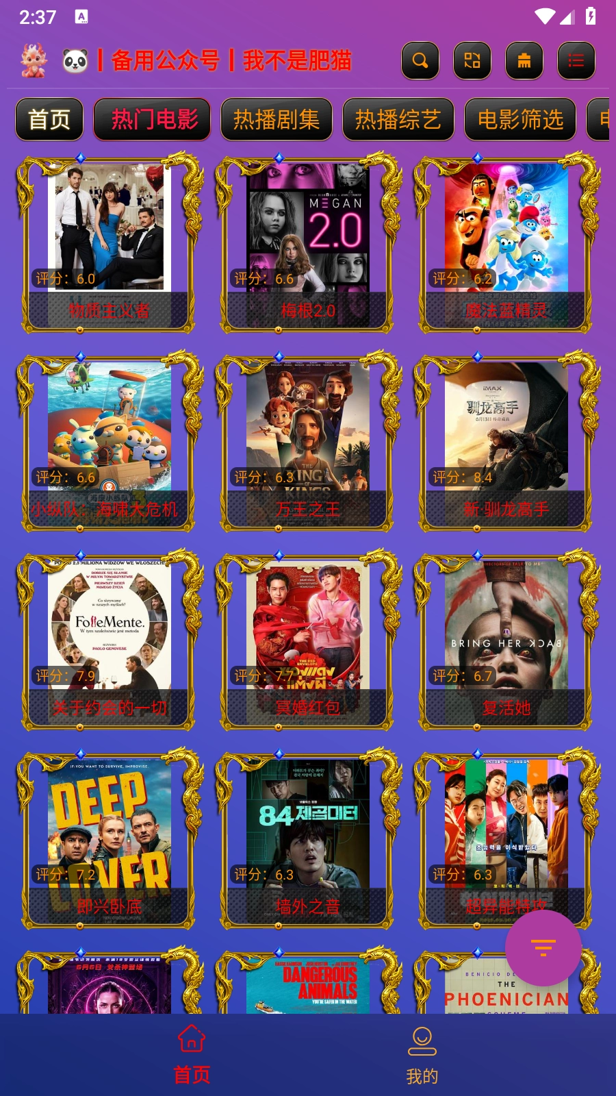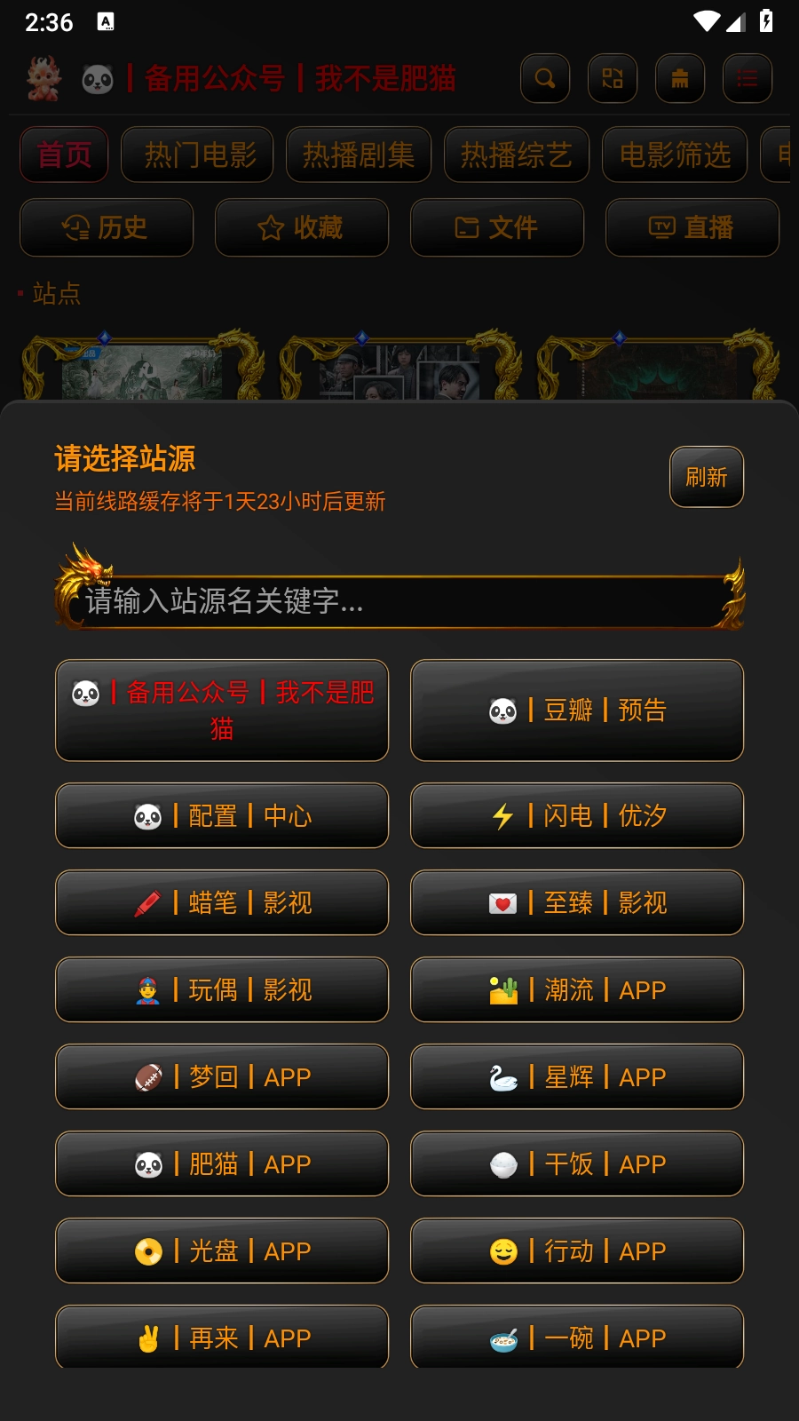3. 完成配置后进入首页,待爬虫加载结束,点击“首页”按钮,就能看到丰富的影视源。