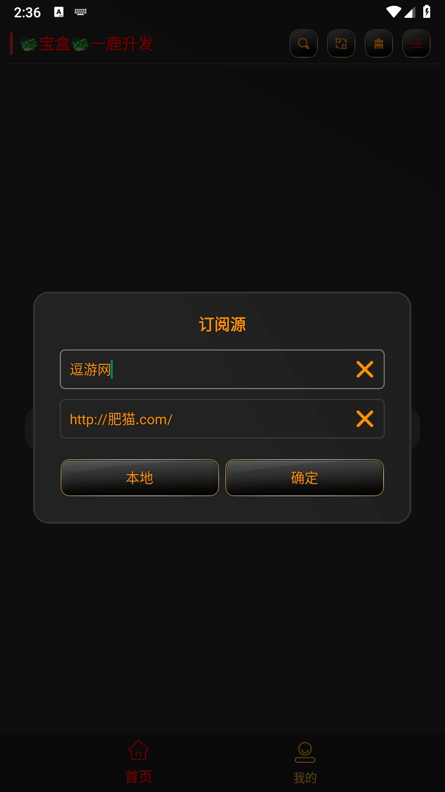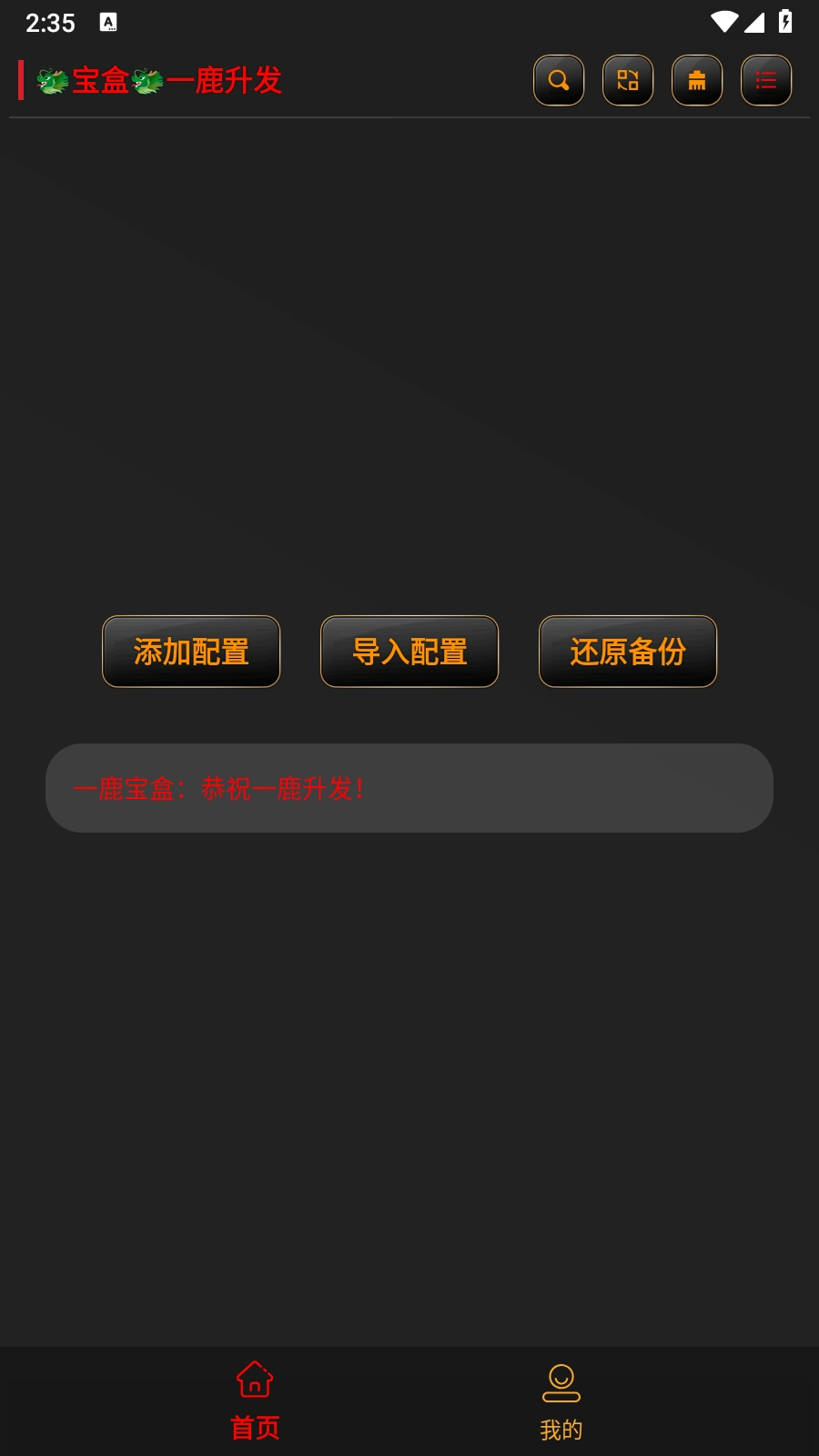 1. 开启黑金宝盒App,进入首页后,在首页界面能够看到添加配置以及导入配置选项。