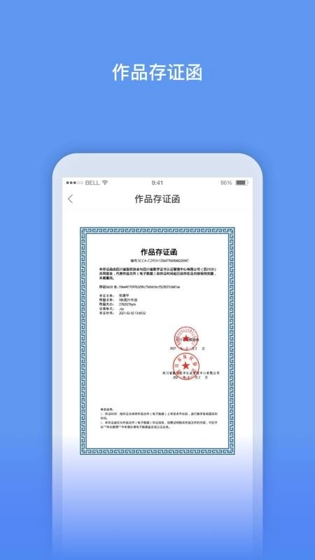 在应用中可轻松管理作品存证,并能高效保存存证的信息,了解存证的详情;