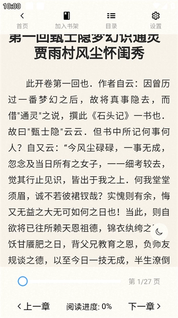 7.这时你就可以开始阅读了,可根据需要更换目录、加入书架或进行设置