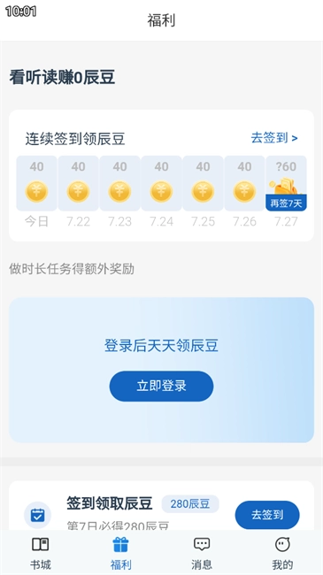首创“阅读赚辰豆”机制,用户阅读即可积累辰豆,可兑换实体书籍等超多精彩福利