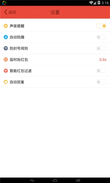 开启红包提醒功能,大大提高抢到红包机率,当红包来了立即发出声音提醒,让你快人一步。