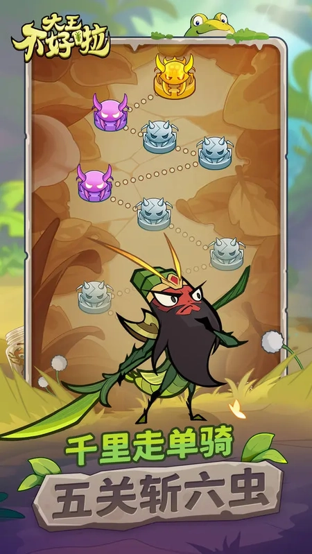 不得了啦,《大王不好啦》这款魔性策略手游,背景设定在昆虫世界。玩家将转世成为虫族大王,统帅诸如螳螂吕布、竹节虫诸葛亮等超300名昆虫版三国名将,开启一场与众不同的征服旅程!
