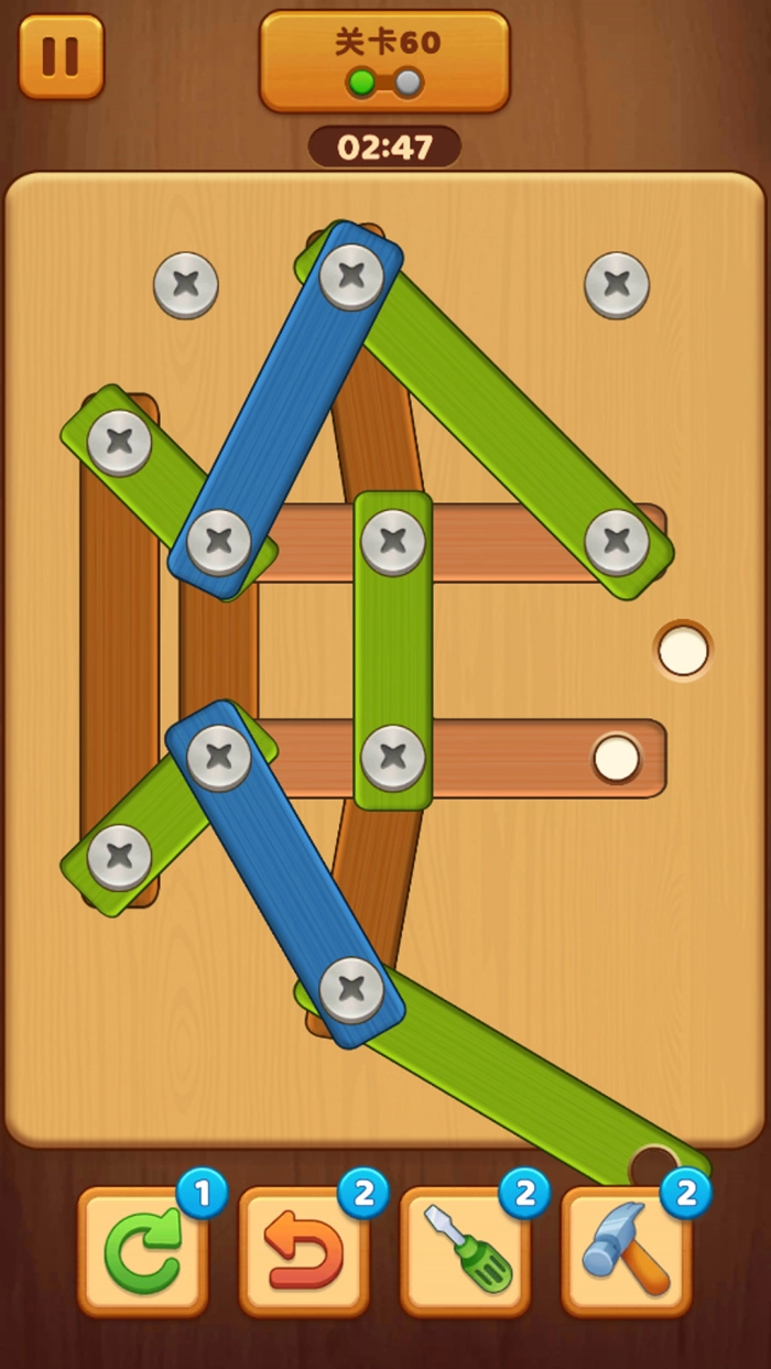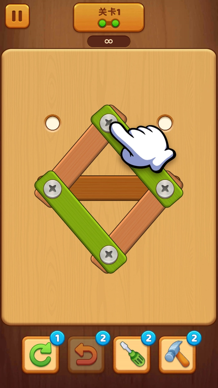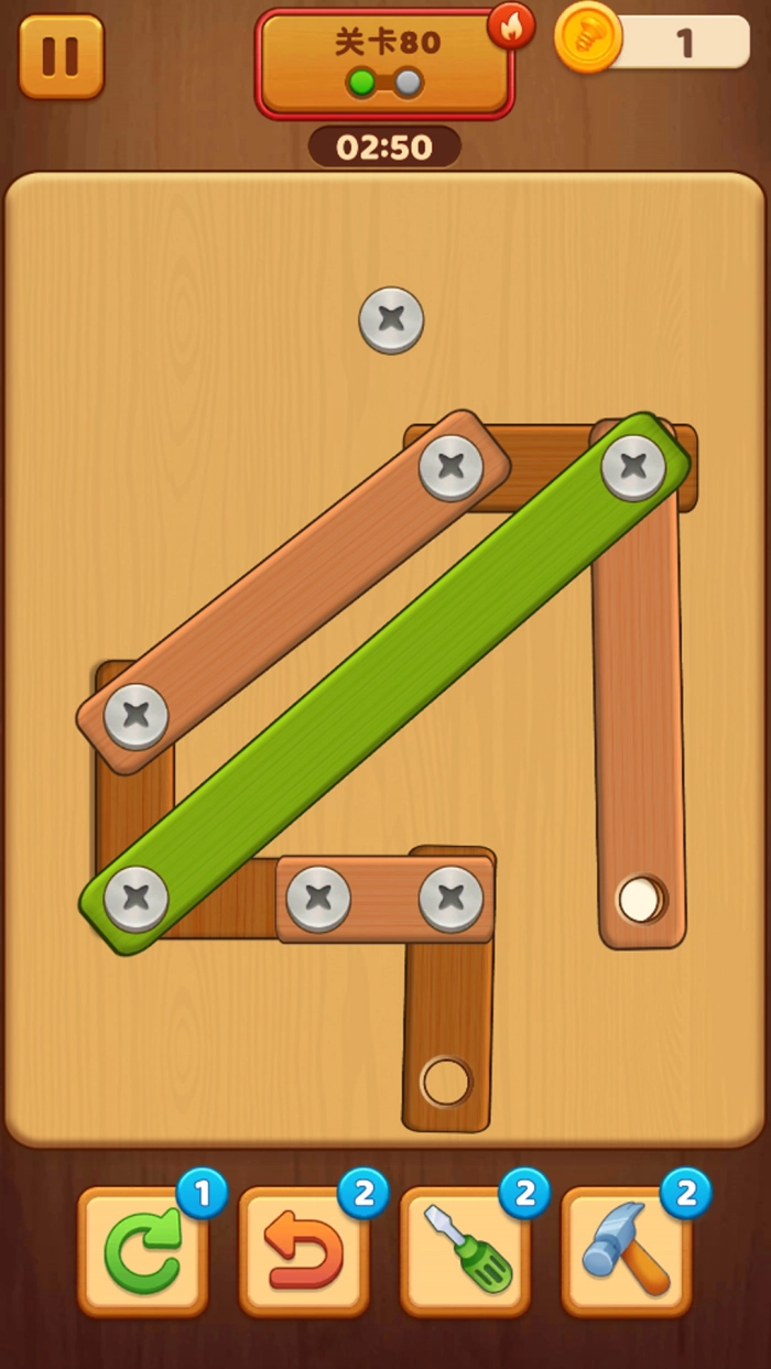 通过点击操作,改变螺丝钉的位置,以移除所有固定在板子上的木条。