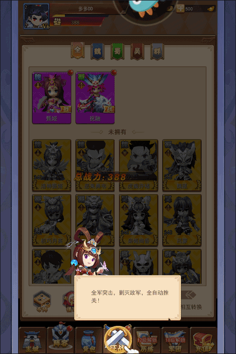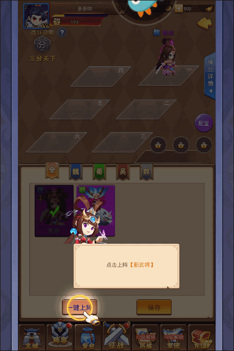 2、解锁更高级的魔将,需要先通关上一层的魔将,并且单人解锁该魔将对应的3组守关武将,这3组守关武将分别需要玩家使用不同数量的武将进行战斗。
