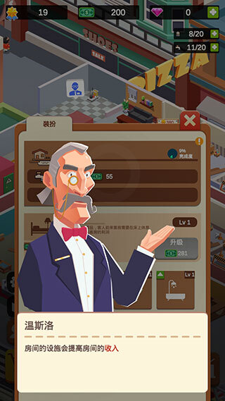2、房间设施能够提升房间的收入,所以对设施进行升级很有必要。