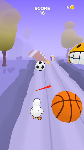 进入游戏后我们可以先熟悉一下操作,在游戏内有3条路,我们可以通过左滑右滑来让鸭鸭调整行走路线,当然在最边上可别再往边上滑可哦。再滑鸭鸭可是会被撞晕的哦。