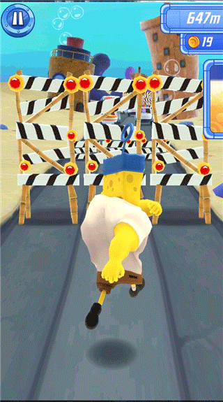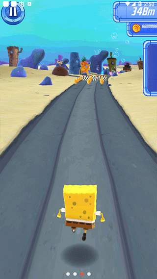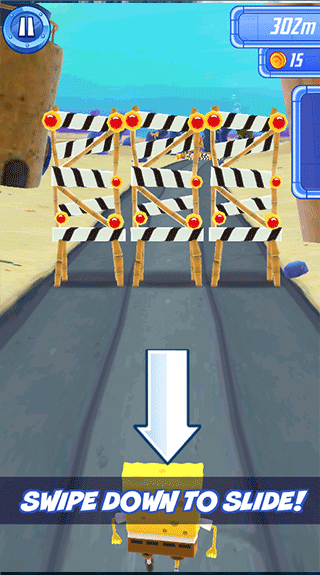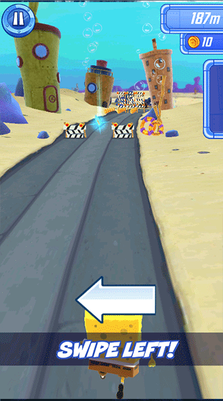 3、通过向左滑动,能够将海绵宝宝移动至左边以躲避障碍。