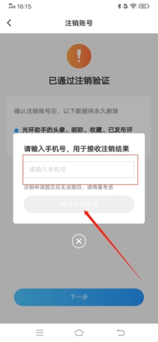 5、进行账号注销的相关验证,成功后,点击下方的“申请注销”;