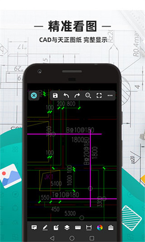 3、全能绘图套件:集合了一整套完善的CAD图纸绘制与编辑功能,包含图纸测量、精准标注、智能搜索图形元素、捕捉关键点等实用工具,切实达成了在移动设备上进行全方位CAD图纸创作。
