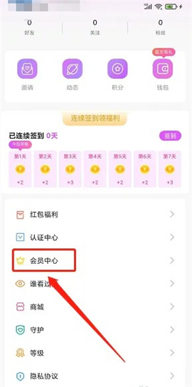 2、进入我的界面,点击【会员中心】。