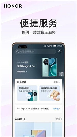 不仅如此,在我的荣耀里,为用户精心准备了会员权益、设备权益、新机礼包等丰富福利,用户可自由领取,致力于为用户带来更专业、更可靠的售前售后体验!有需求的用户赶快下载使用吧!