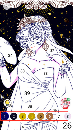 2、将会进入绘制界面,在界面下方找到与图片人物对应的数字颜色,点击该颜色即可为人物上色。