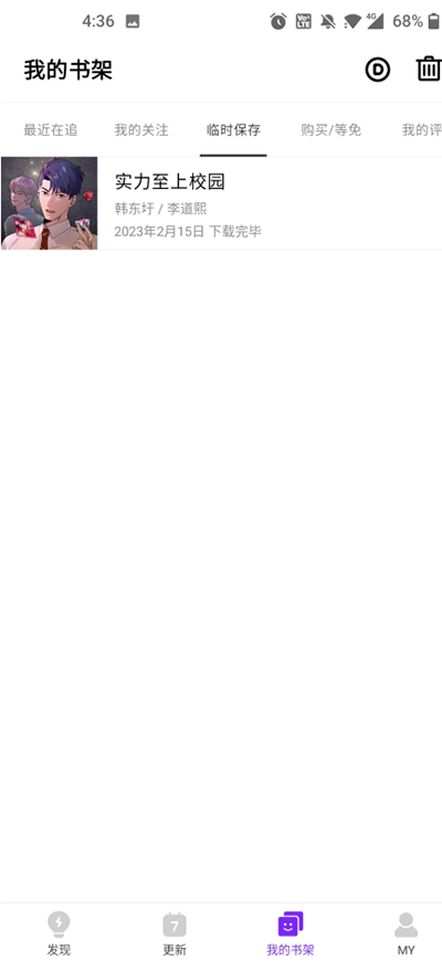 4、最后便能在“我的书架”里面找到临时保存的漫画啦!