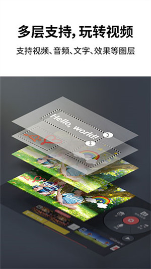 支持多个视频层、图片层、音频层、文字层以及效果层,无论是视频还是音频,皆能随心创作,畅享无尽创意。
