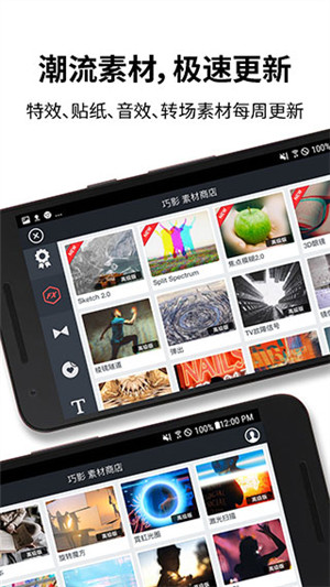 拥有几千个特效、贴纸、音效、转场以及模版素材,并且每周都会持续更新!助你轻松变身技术流。