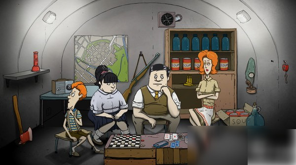 玩家可以通过不同材料和家族成员的搭配,选择最适合自己的收集方式。建议玩家从离避难所入口最远的地方开始收集,慢慢靠近避难所,这样来回跑最省时间。收集材料时,玩家必须将至少一名家庭成员救到避难所。一个人无论收集多少材料,都难以生存,也很容易发疯。注意右上角的时间。每轮物品收集后,你必须移动到黄色箱子,将物品扔进避难所。在时间结束之前,玩家必须移动到这个区域并等待跳下避难所。如果时间到了,玩家还没有在这个范围内,则游戏直接结束。玩家在收集材料的时候,不仅要收集食物和水来维持生命,还要考虑后续的发展问题,收集一些对玩家生存有利的道具。
