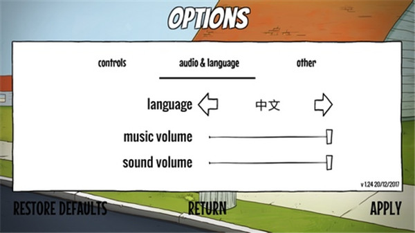 2.选择中间的audio和language选项,将language调整为中文,再点击右下角的APPLY。