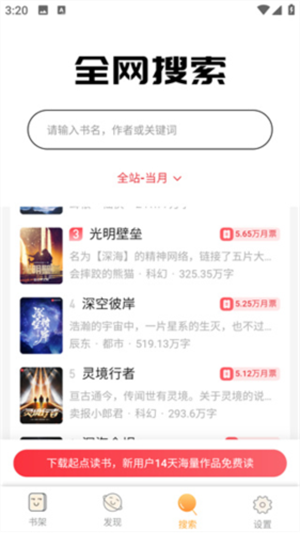 【丰富书源】全网跨站搜索,百万书籍免费看,下载预读随身带;