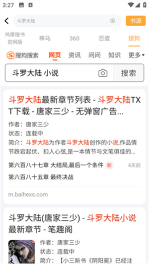 鸠摩搜书不管是热门小说还是完结本都可以搜索到,除此之外还包含了神马、360、百度等搜索引擎,为你的搜索体验保驾护航;