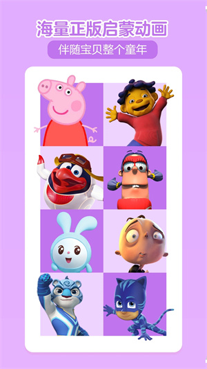 视频播放界面大屏大按钮,简单易用,1岁宝宝即可轻松自主选择内容,给予家长更多自我空间。内容分龄且支持场景推荐,包括叫早、哄睡、运动等多模式需求。支持手机、Pad、智能电视等多种终端设备,随时随地方便使用。