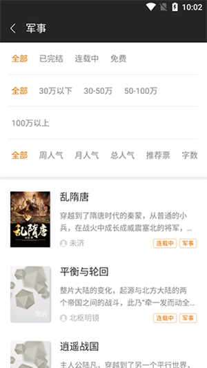 3、随便点击一项,并根据完结、连载、字数、人气,排列出来;