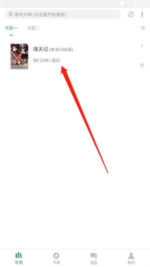 5、在这里我们就可以把书源小说网添加书源中,选择好“书源后”,再退回到“书城”中。