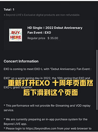 1、第一步,先下载本站提供的beyond live安装包。下载完成后,在应用中点击你想要购买的演唱会场次,这里以exo演唱会为例进行说明。