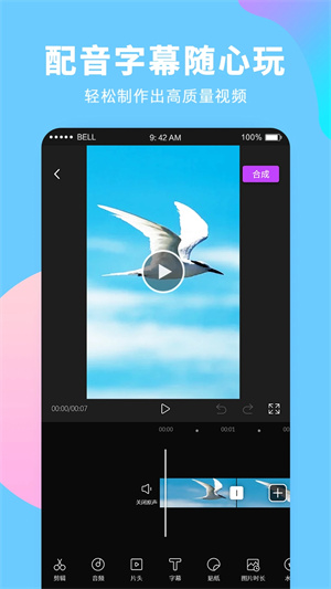 简易式视频素材剪辑及视频素材合并完美实现,首创轻松手指一划式剪辑模式。