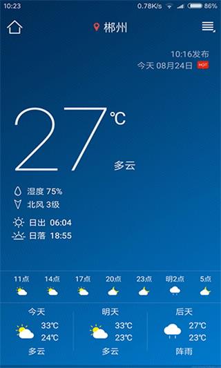 3、能够在线预测未来15天内的天气预报情况,并实时了解天气信息。