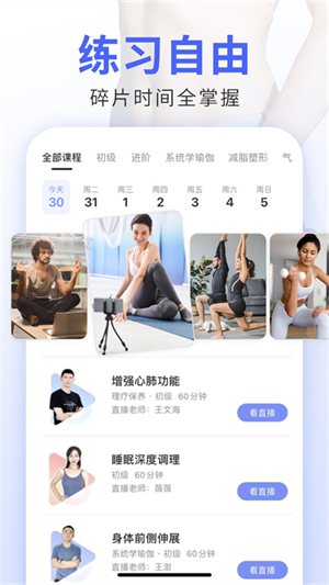1、线上瑜伽教学:线上课程内容丰富,系统自动推荐。