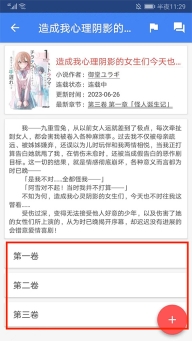 2、进入小说简介界面,选择右下角红色【+号】图标,