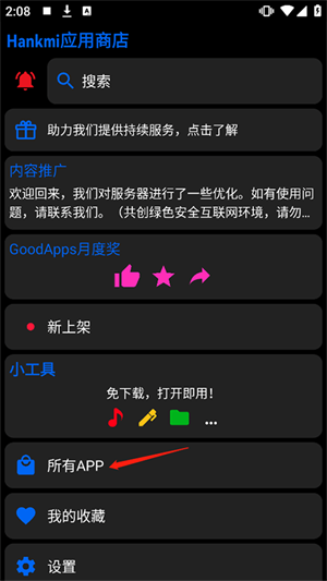 3.hankmi专区应用、新上架的应用、所有app等分类也是很全面、很详细的