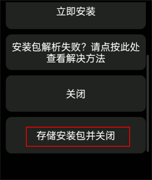 2、点击“保存安装包并关闭”即可将安装包备份在手表上