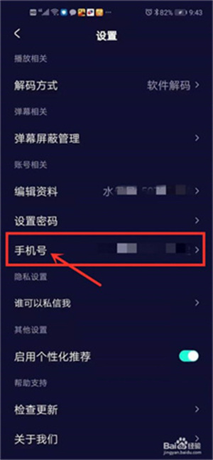 4. 当进入软件的设置界面之后,在页面里点击手机号对应的菜单。