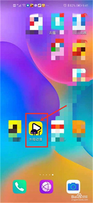 1.打开手机,解锁系统。找到水母动漫,然后点击进入软件。