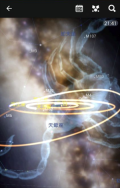 我进入系统的坐标为地球,用手指旋转界面,找到明亮的光带,那就是银河。下面三图为银河中的天鹅座、猎户座和天蝎座。