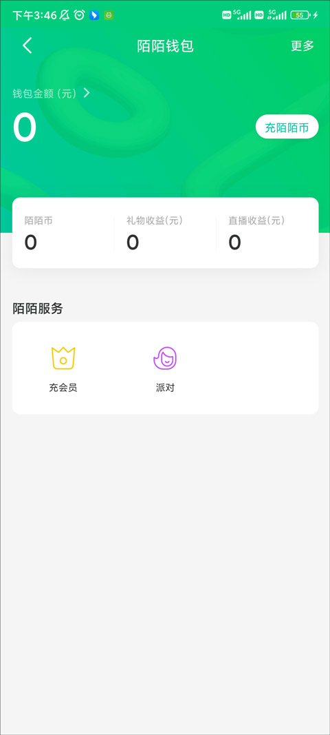 3、在钱包的右上部分,存在一个白色的“充陌陌币”按钮,点击此处即可。